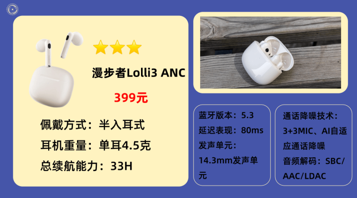 9.漫 步者L olli3 ANC蓝牙耳机