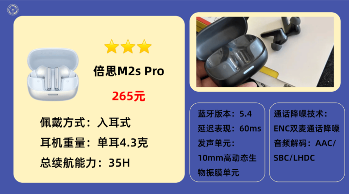 2.倍 思M 2s Pro蓝牙耳机