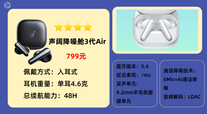 7.声 阔降 噪舱3代Air蓝牙耳机