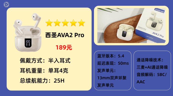 1.高性价比的西圣AVA2 Pro蓝牙耳机(189元)