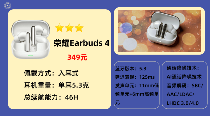 6.荣 耀E arbuds 4i 蓝牙耳机