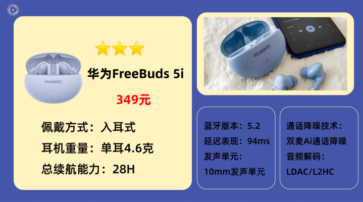5.华 为F ree Buds 5i蓝牙耳机
